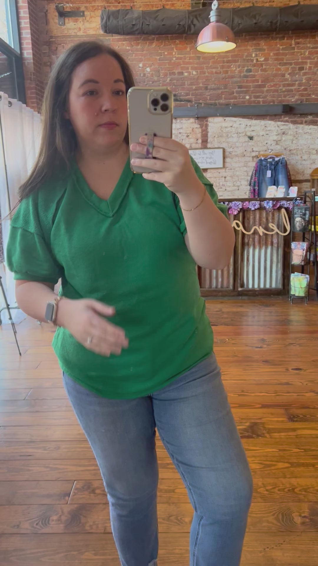 This vibrant green tee is the kind of staple every closet needs. Designed with a flattering v-neckline, soft lightweight fabric, and an easy relaxed fit, it’s comfortable enough for everyday wear but bold enough to stand on its own. The subtle rolled sleeve detail adds just the right touch of structure, keeping it from feeling basic.
